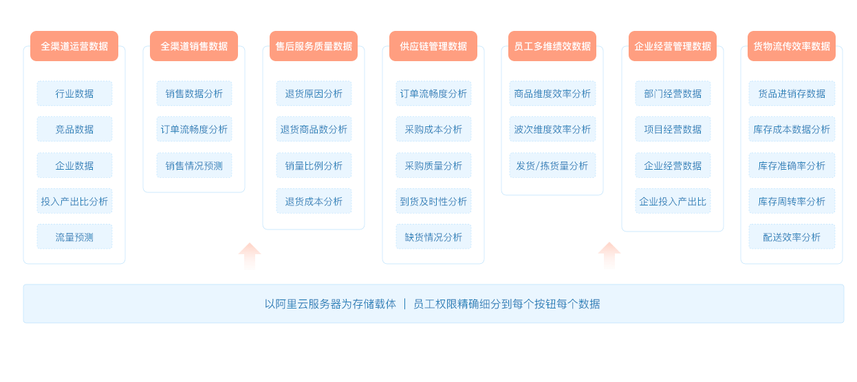 • 企業數據全渠道采集,全部門覆蓋,多維度分析,輔助決策